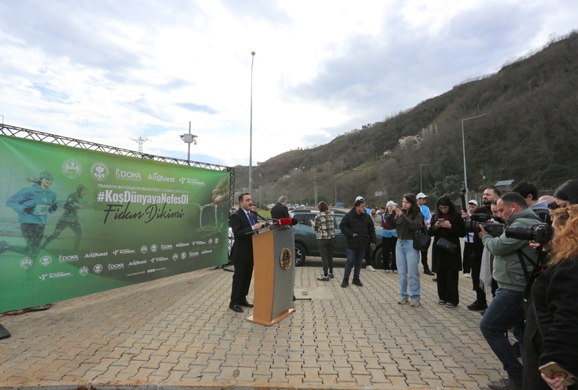 DOKA Genel Sekreteri Akpınar, "Bugün burada 46. Uluslararası Trabzon Yarı Maratonu'nun lansmanının öncesinde anlamlı bir etkinlik vesilesiyle bir arada bulunmaktayız. Sporun birleştirici gücünü doğaya karşı sorumluluğumuzla buluşturan bu organizasyonda sizlerle birlikte olmaktan büyük memnuniyet duyuyorum. Airquest projemiz kapsamında desteklenen bu fidan dikimi etkinliği kapsamında 'Dünyaya Nefes Ol', Airquest 'dünyadaki nefesi tekrar düşün, sorgula' anlamında, bu etkinliğin spor organizasyonuyla birleşmesi, sporun birleştirici gücüyle doğaya karşı olan sorumluluklarımızı tekrar bir araya getirdiğimiz bu fidan dikimi etkinliği; geleceğe karşı, gelecek nesillere karşı sorumluluğumuza aslında atılan bir imza niteliğinde” dedi.